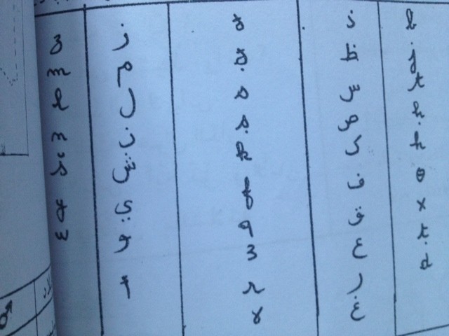 Mein Lehrer hat noch alle Geduld der Welt, die wird er auch noch gehörig brauchen. Er zeigt der Reihe nach auf Gegenstände, die ich dann benennen soll. „ktaib“ sage ich dann für Buch, oder „jarida“ für Zeitung. Falls es mir rechtzeitig wieder einfällt. Zum Glück darf ich spicken. Mein Lehrer hat nichts dagegen. Grossartig!