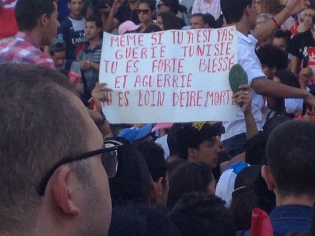 An diesem Tag überschlagen sich die Ereignisse. Am Mittag gehen tausende auf der zentralen Avenue de Bourgiba in Tunis auf die Strasse und auch in andern Städten des Landes werden Demonstrationen gegen die Übergangsregierung gemeldet. Die erwartete Ankündigung des Rücktritts des Premierministers Larayedh ist ausgeblieben. Begründung: Der Kampf gegen den Terror habe Priorität. Am Abend demonstrieren Ennahda-Anhänger vor dem „theatre municipale“ in Tunis gegen den neusten Terrorvorfall. Die Opposition demonstriert gegen die Regierung Larayedh vor dem Regierungssitz Kasbah.