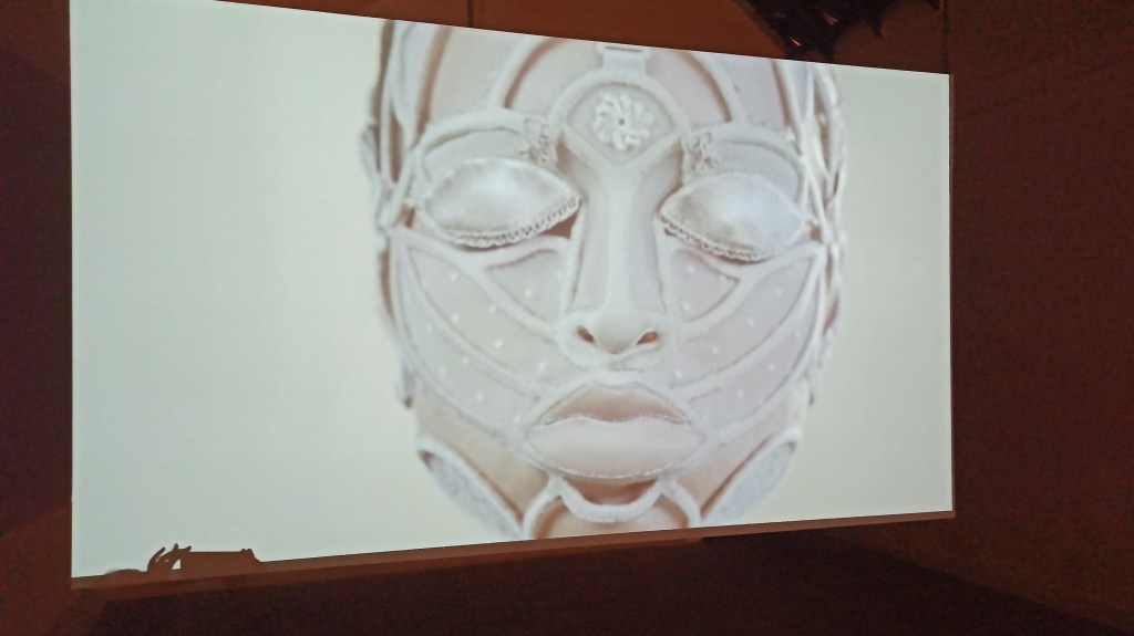 „Bhumi“ was initiated in Balia, Bangladesh during the lockdown. Local craftspersons worked with artist Kamruzzaman Shadhin to create installations using local materials and agricultural practices. The groups of figures made of sisal depicting scenes from rural life sit on sisal circles hanging from the ceiling. A dramatic lightning puts them on a stage, as the visitor wander among them. Impressive installation and shows the high appreciation of rural handicrafts in South East Asia.